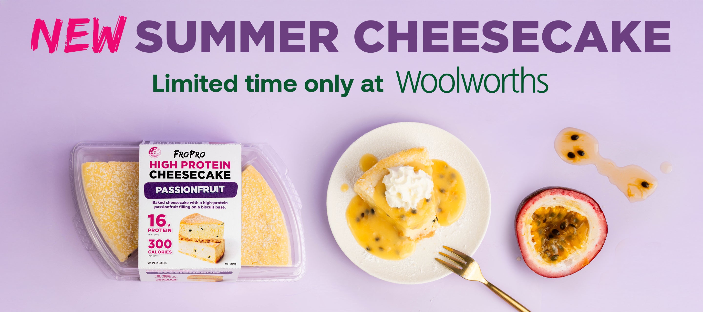 Creamy passionfruit filling on a biscuit base, this delivers all the flavourand texture of a classic cheesecake for fewer calories and more protein.At 300 calories and 16g protein per serve, this is theperfect way totreat your taste buds and your health!