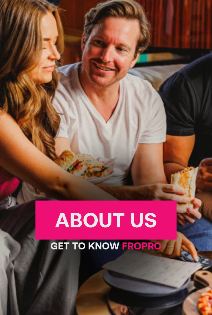 In 2012, FroPro was born out of a passion to make healthy eating more accessible and enjoyable for everyday Aussies. We make healthy, high-protein frozen pizzas, pies, burritos, fried chicken and cheesecakes that deliver convenience and flavour, without compromising on health .