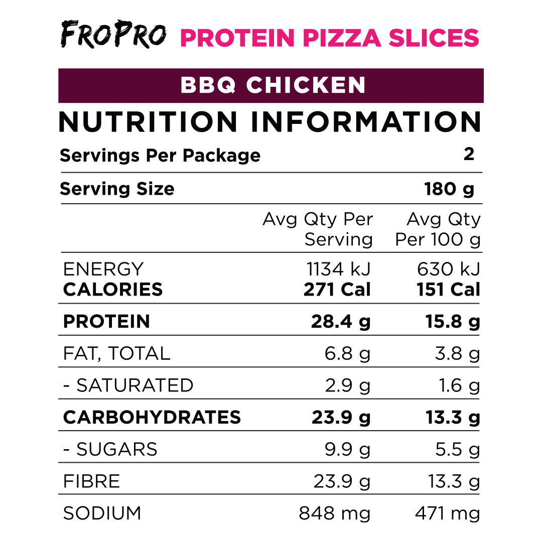 Topped with delicious Australian chicken, red capsicum, Reduced Fat Mozzarella Cheese and BBQ sauce on our high-protein Pizza Base.